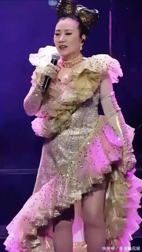 演唱会那天,她穿了一身金色的礼服,用麦克风跟大家挥手打招呼,还用上海话聊得挺亲切的。
